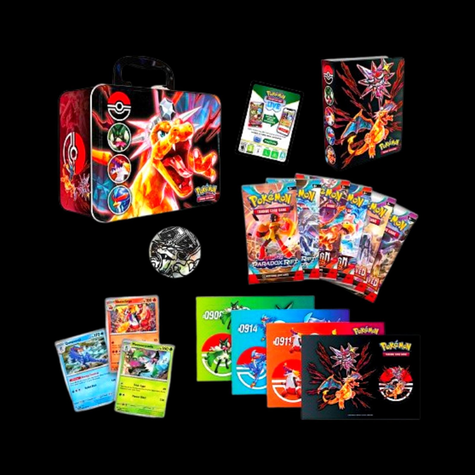 3 foil cards featuring Meowscarada, Skeledirge, and Quaquaval