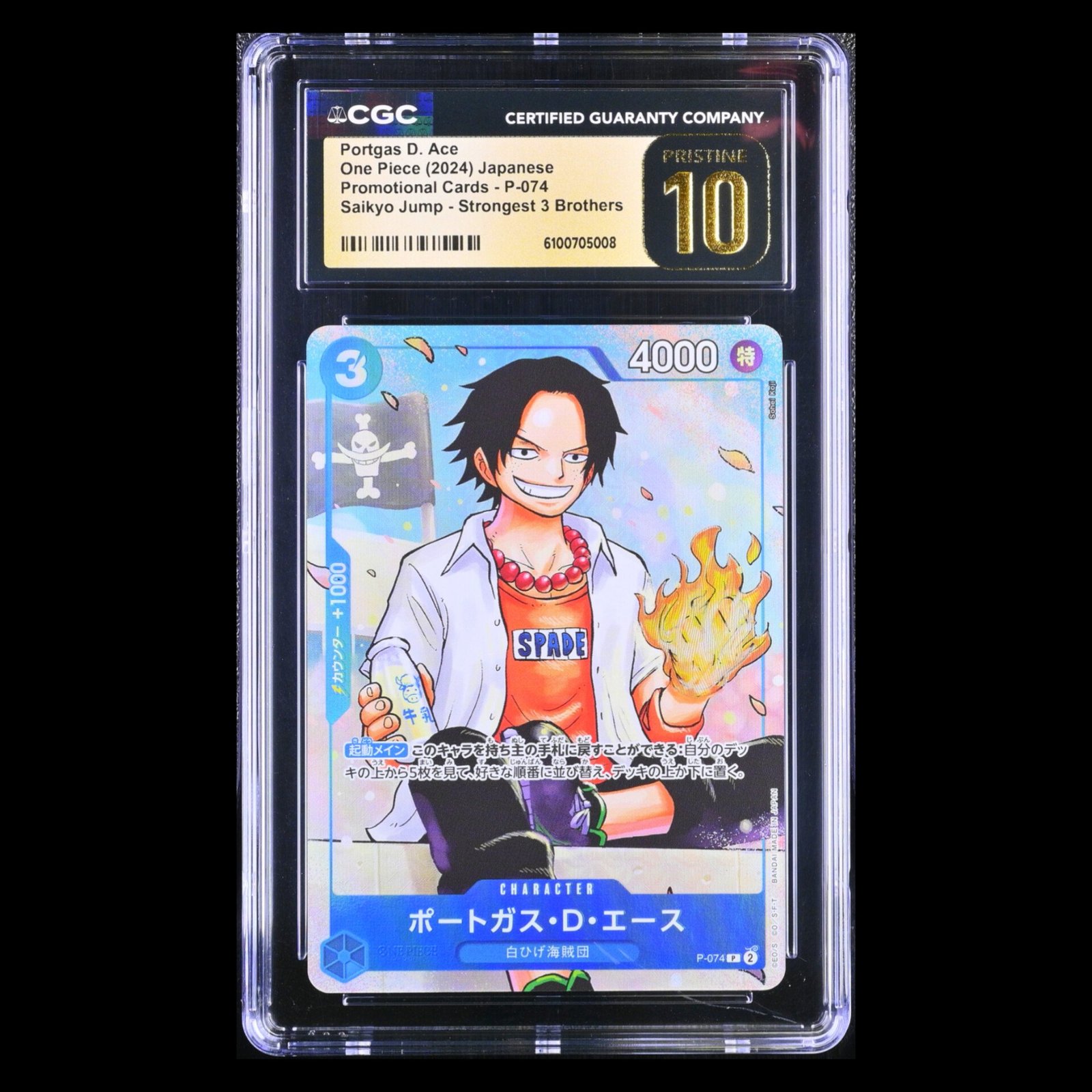 Portgas D. Ace P-074 Saikyo Jump Promo Japanese CGC Pristine 10