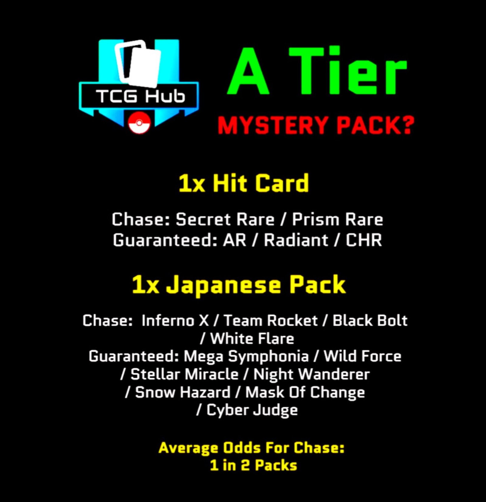 Average Odds For Chase : 1 in 2 packs